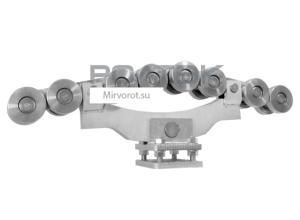 Опоры (008.3500) содержат по два блока роликов высокой несущей способности, соединенных мощным балансиром. В конструкции реализовано подвижное соединение трех узлов качания. Движение створки ворот по направляющей происходит плавно. Специализированные подставки регулировочные особой прочности включены в конструкцию опор, они необходимы для осуществления регулировки положения опор как во время монтажа, так и во время всего периода эксплуатации.