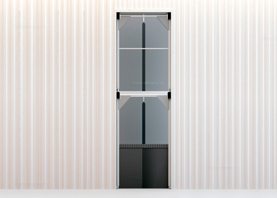 - за откатной или распашной дверью для минимизации потерь холода во время работы с открытой камерой