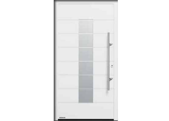 Входная дверь Hormann ThermoSafe Мотив 689 ручка из нержавеющей стали 38-2, стекло с мотивом Parsol серого цвета, матовое, с 7 прозрачными полосами